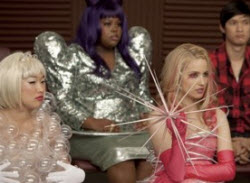 The ladies (and Kurt) take advantage of the assignment and create costumes based on some of Gaga’s most famous looks. Their performance of “Bad Romance” was one of the best of the season too. And, most importantly, in the end, Tina found a way to keep her goth look she convinced Figgins that her father was a vampire and that Asian vamps are the cruelest of them all.